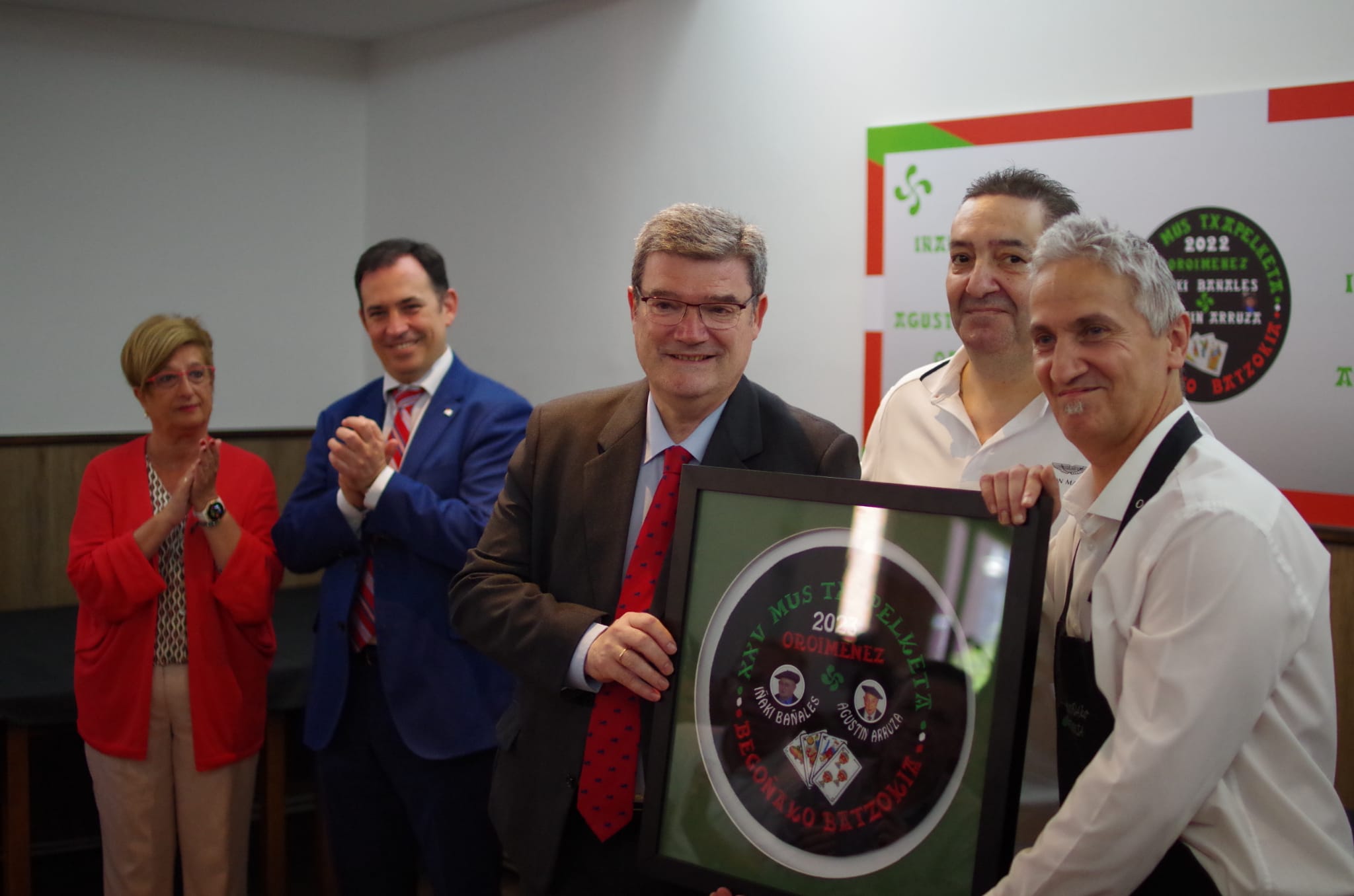 El alcalde José María Aburto le entregó la txapela al nuevo campeón.